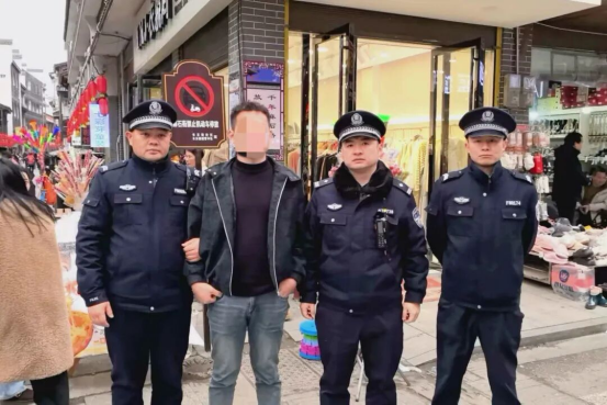 ▲期间,大荆街派出所执勤民警在巡逻中,敏锐发现一名混迹人群的网上在逃人员,并迅速将其抓获归案。