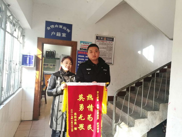 1月23日,余某手持“热情为民,英勇无畏”字样的红色锦旗,赶到金鹗山派出所感谢民警姜涛,热情为民,英勇无畏。