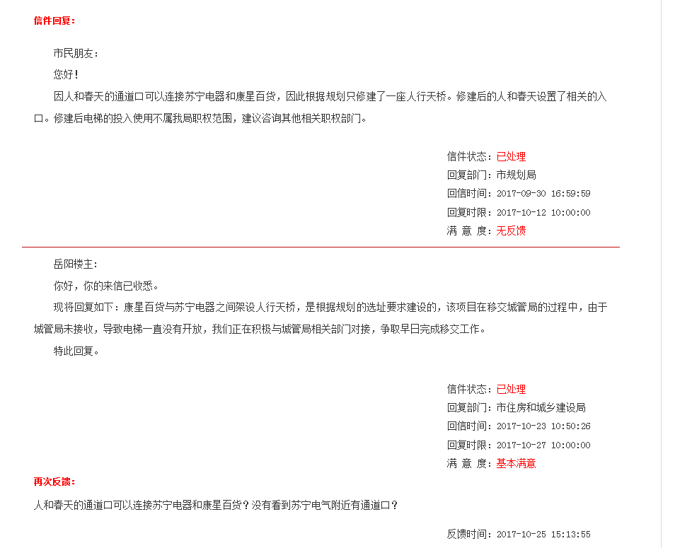 步行街在人和春天的出口直接连到康星百货,该出口处设置了人行天桥可以通往对面的苏宁电器。