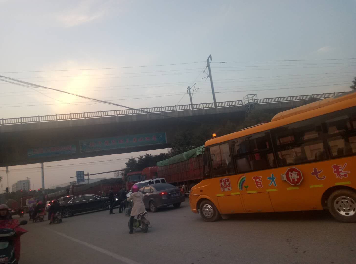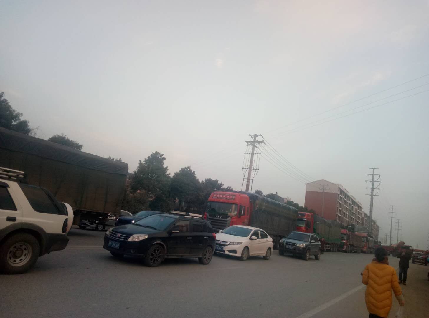 2.过境大货车为节约成本大量涌入107国道,致使施工路段(路面较窄、南北双向两车道)车流量本来较多更不堪重负,导致拥堵;