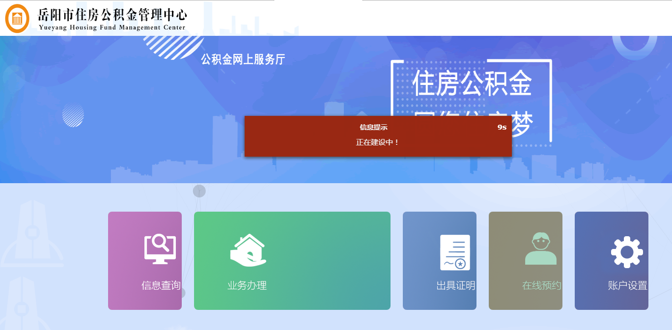 1、目前岳阳市住房公积金中心不再具有独立的网站管理权限,管理权均已移交至电子政务办,由电子政务办对中心网站进行统一管理,日常有关公积金的相关业务您可以拨打公积金服务热线12329进行咨询了解。