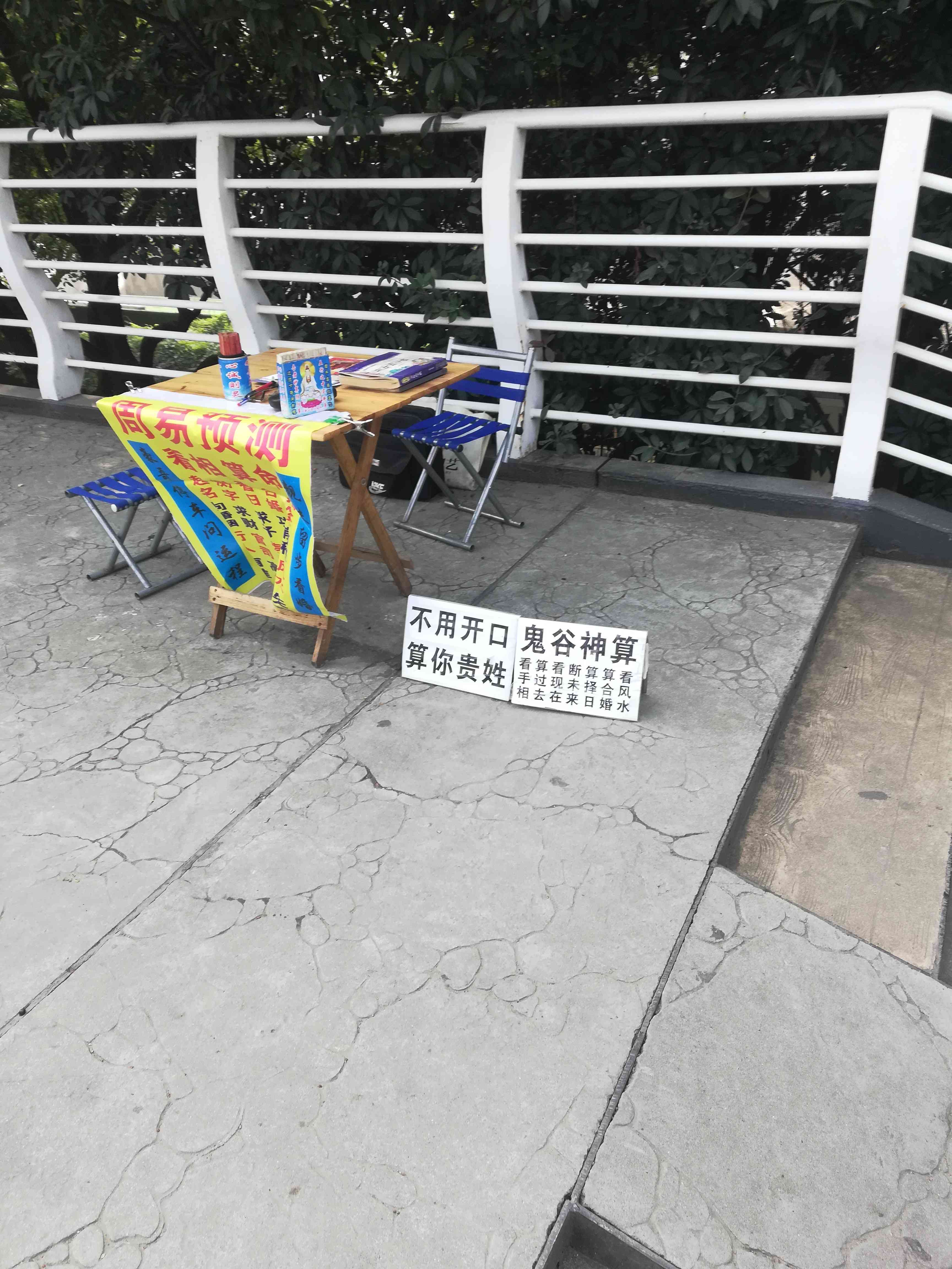 11月19日上午,我局属市城管行政执法支队直属二大队针对您来信反映的情况,开展了一次专项整治行动,发现市二人民医院天桥上有一名算命摊贩正摆摊营业。执法队员对其进行了批评教育,责令其当场撤摊,并严格要求其今后不得再次当街违章摆摊算命。后段,我局将进一步加大巡查执法力度,防止此类违规占道行为发生,确保辖区主次干道市容秩序,为全体市民营造整洁有序的人居环境。