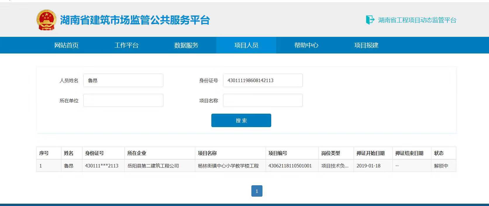 本人2018年底在岳阳县杨林镇小学担任技术负责人,中级职称是锁定的。现项目已竣工5个多月了,已经走了证书撤出程序,湖南建筑市场监管公共服务平台网站却一直还在显示解锁中。不知是何原因。 根据施工企业经办人反映,2019年5月份已进行撤证申请,并多次上门咨询进展情况,但岳阳县安监部门回复说系统故障,不能完成解锁。 且经咨询岳阳市招投标办,2019年5月确实存在监管部门系统问题,但系统早已更新,且已集中进行过岳阳地区的操作培训。 请早日解决此问题为感。 |