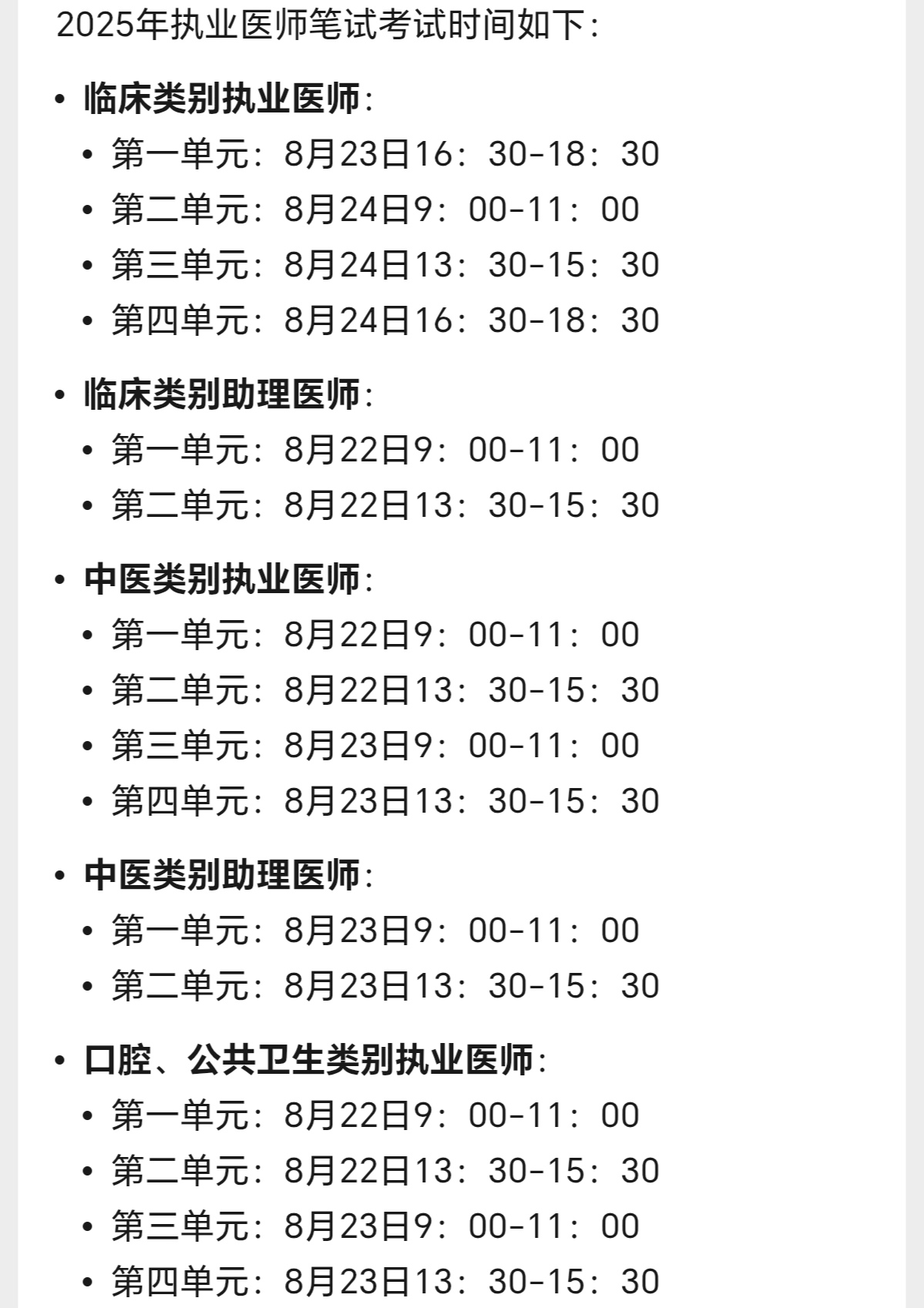 标题: 关于岳阳县事业单位2025年集中公开招聘工作人员笔试考试时间与国家执业医师笔试考试时间可能存在冲突,能否调整调整考试时间避免冲突!!!
